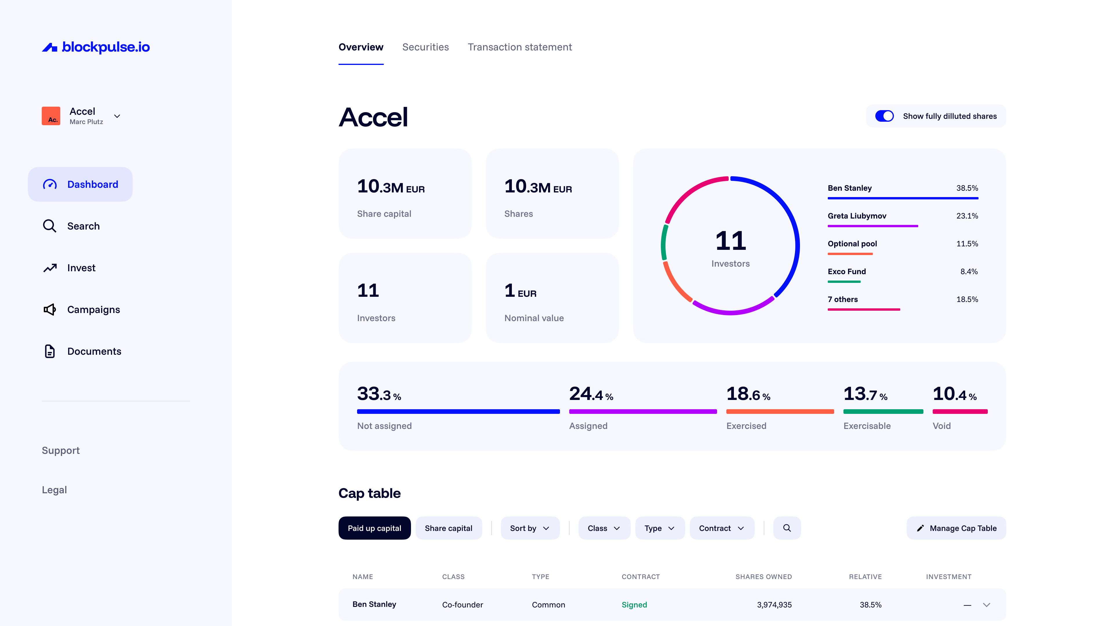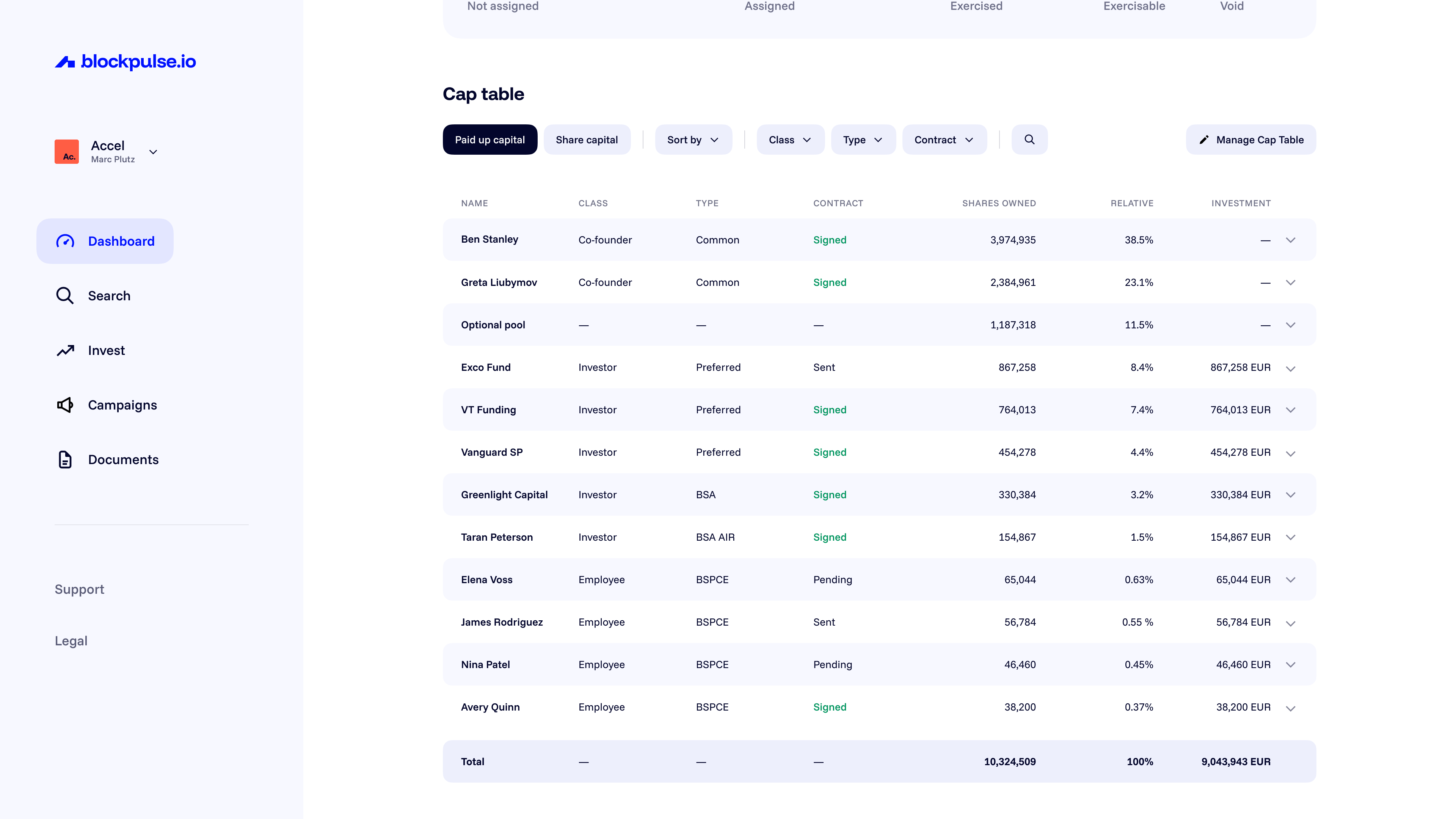 - Better status overview of investors within cap table.