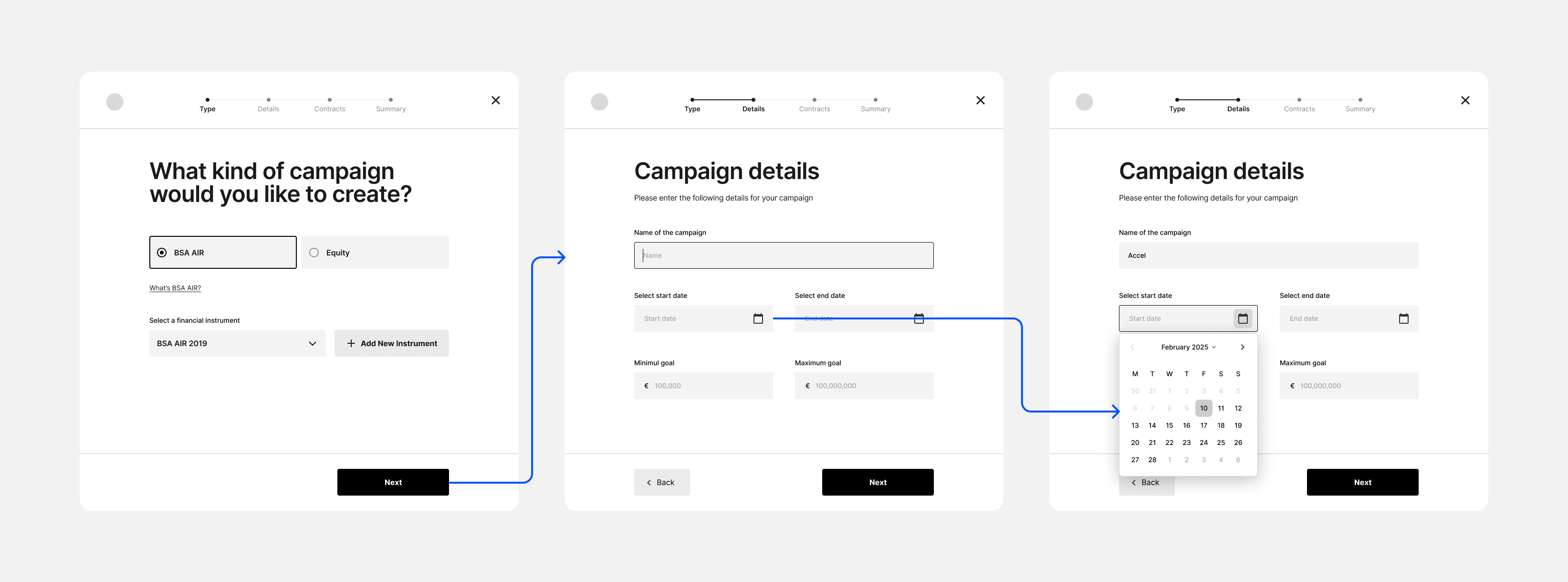 Campaign creation flow steps