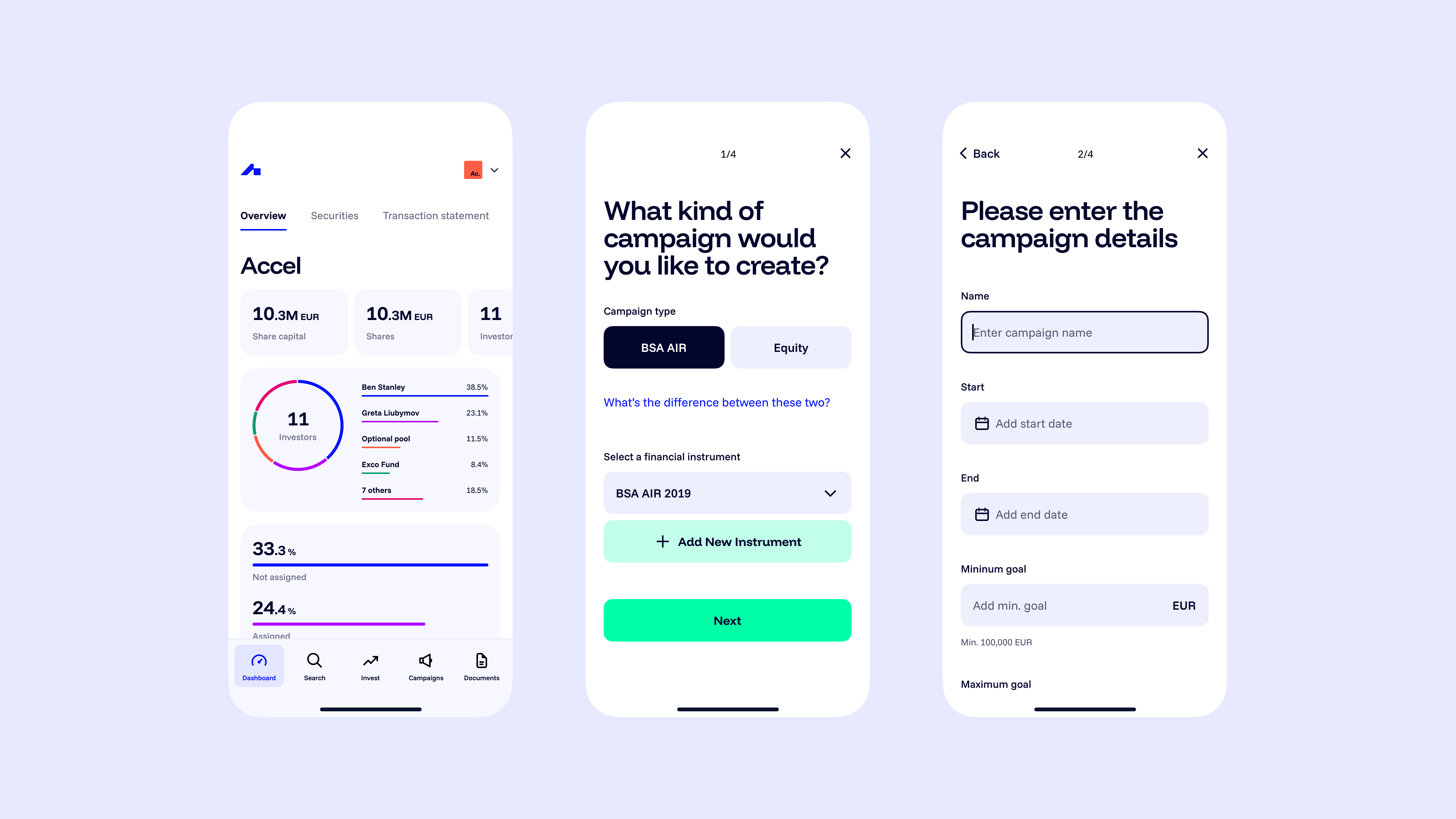 - Improve usability and task success rate on key user flows (onboarding, investment, campaign creation).