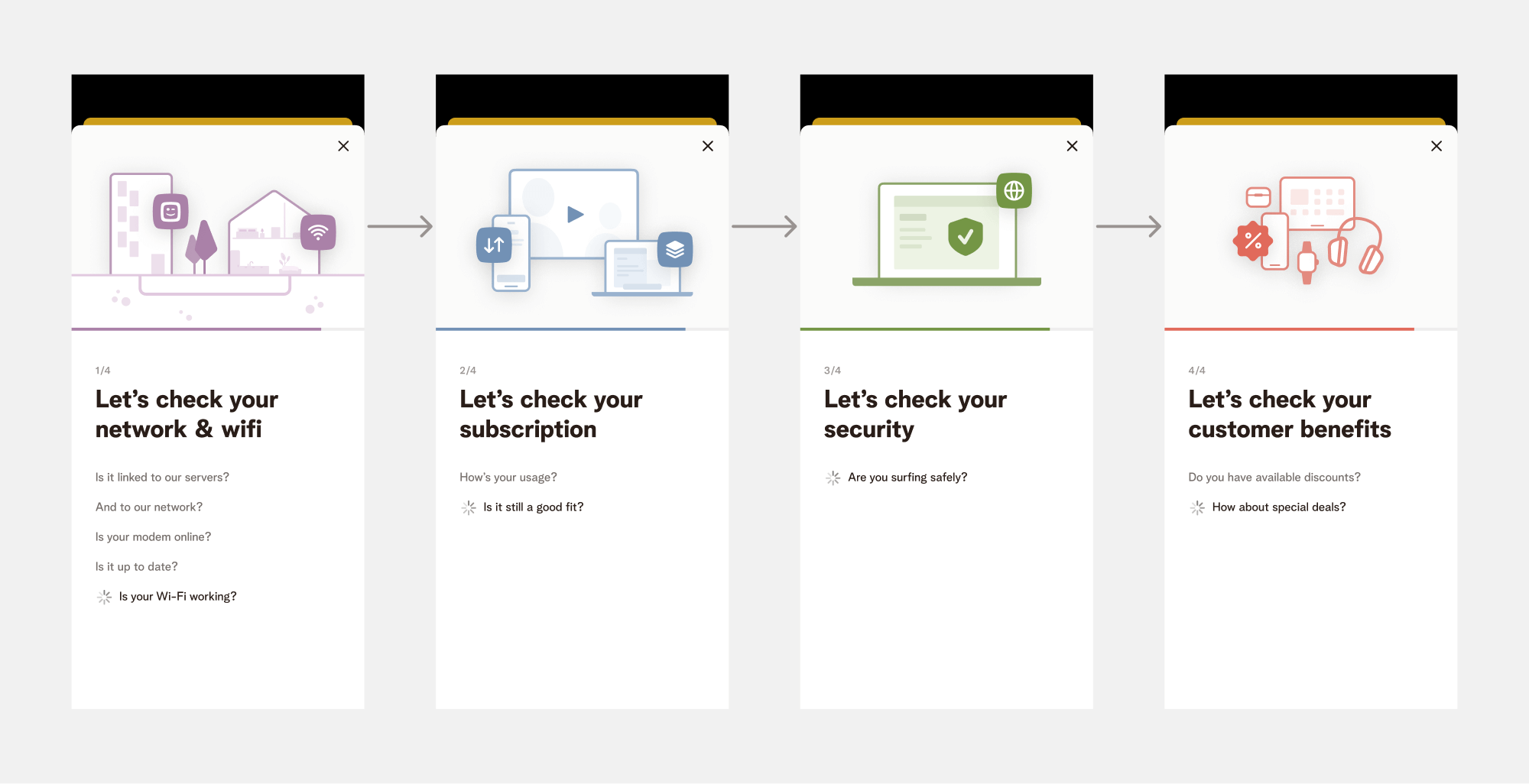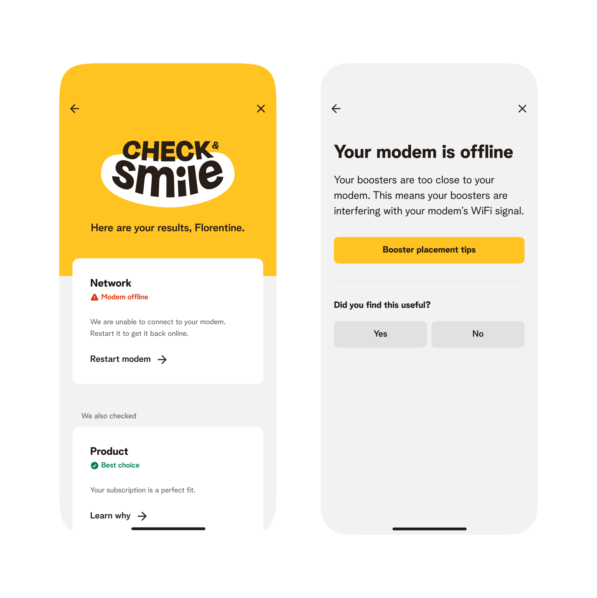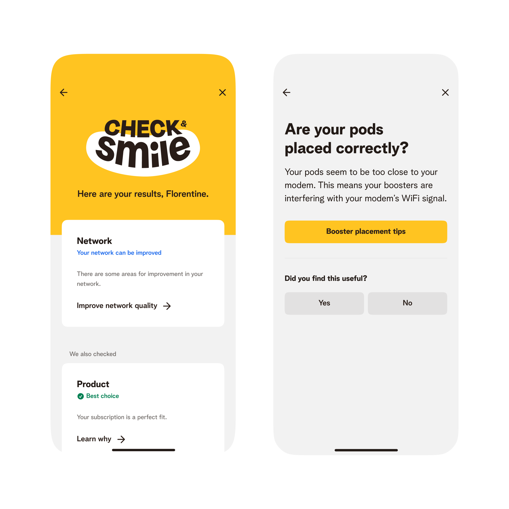 - Home network: surfacing optimisation opportunities if we notice symptoms of a poor network. If from our side, nothing is wrong, we still wanted to lead the customer to a troubleshooting flow.